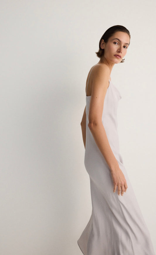 L-Robe en satin gris claire